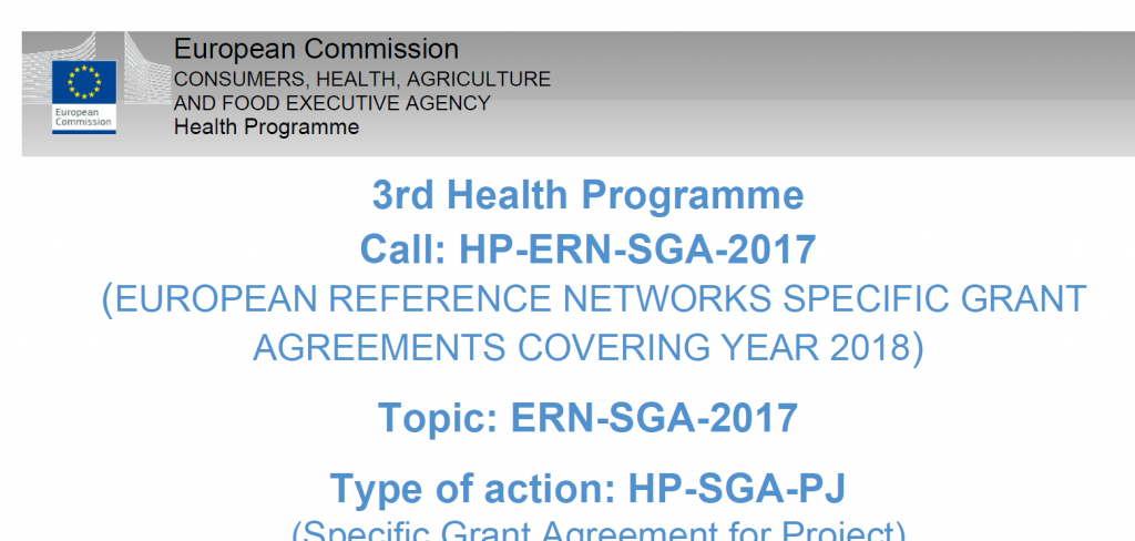 The European Commission invited ERNs to submit a proposal for a Specific ERN Grant Agreement for the second year of operation (March 2018-March 2019) by January 9, 2018. This SGA proposal needs to presents the network’s activities, including a detailed action plan and budget for year 2.